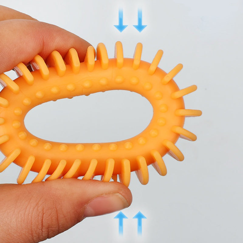 Zahnreinigungseffekt – Das Spielzeug dient nicht nur als Spielvergnügen, sondern unterstützt auch die Zahnpflege, indem es beim Kauen Plaque und Zahnstein reduzieren hilft.