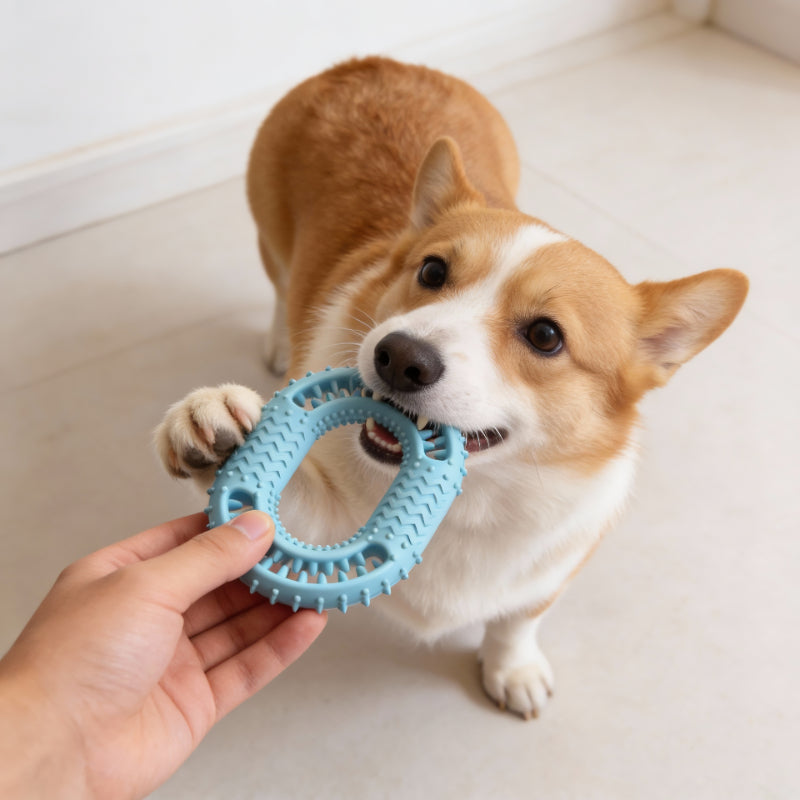 TPR O-Ring – Hergestellt aus flexiblem, fester TPR-Material, sorgt das Kauspielzeug für Hunde für ein sicheres und befriedigendes Kauerlebnis.