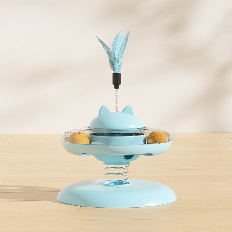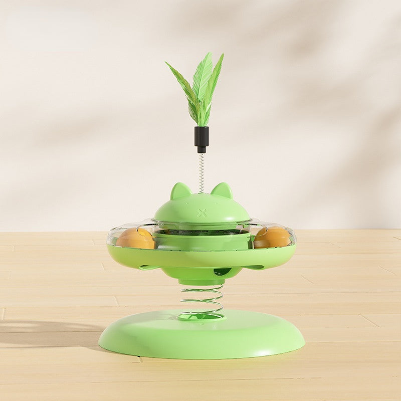 Katze Intelligenzspielzeug, interaktives Futterspielzeug mit Cat-Drehteller und Katzenangel, fördern die geistige Aktivität