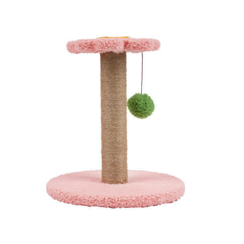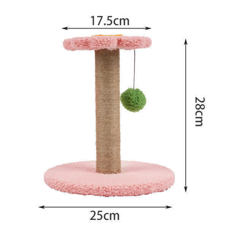 Pawsometime Katze kratzbaum, rosa Kratzstamm für kleine Katzen, stabile Basis mit blütenförmiger Plattform