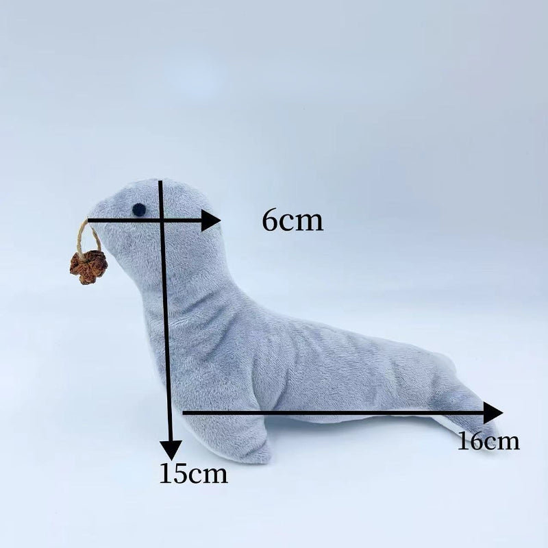 Katze Kuscheltier, Süßes Graublau Seelöwe mit Katzenminze & Glöckchen, Kauspielzeug, Linderung von Angst,16x6x15 cm