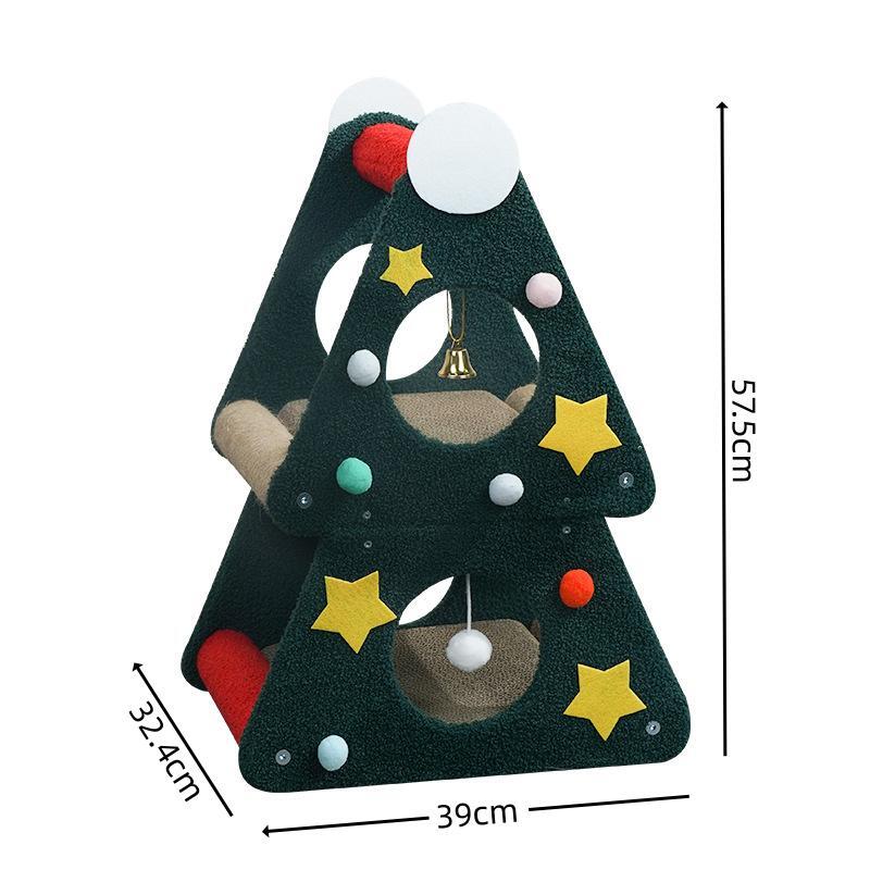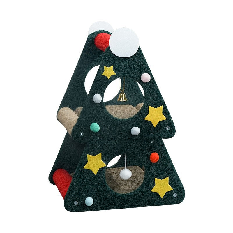 Weihnachtliches Design – Der katzen baum in Form eines festlichen Weihnachtsbaums bringt die winterliche Stimmung in Ihr Zuhause.