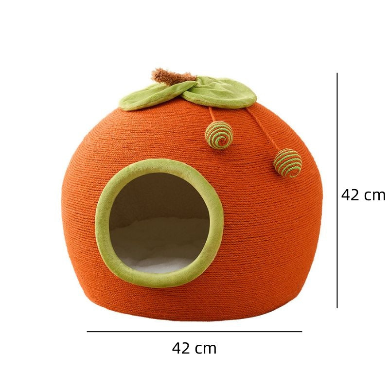 Katzen Kratzbrett, Kratzbaum mit Katzenbett, Niedliches Design in Form einer Persimone, Großes Platzangebot, 42 x 42 x 42cm