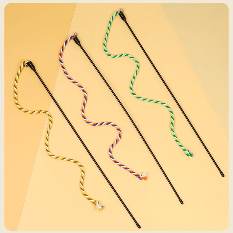 Katzen Spielzeug, Farbige Baumwollseil katzenangel in Orange, Gelb & Grün für Katzen Spielstunden, Selbstgenuss (1 Stück)