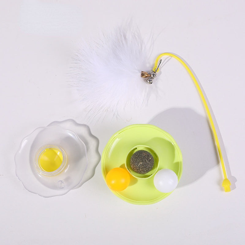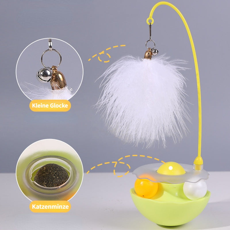 Katzen Spielzeug, Gelb Cat-Drehteller, Kippsicheres Design mit Wackel Federglocken-Katzenangel & Katzenminze-Bälle