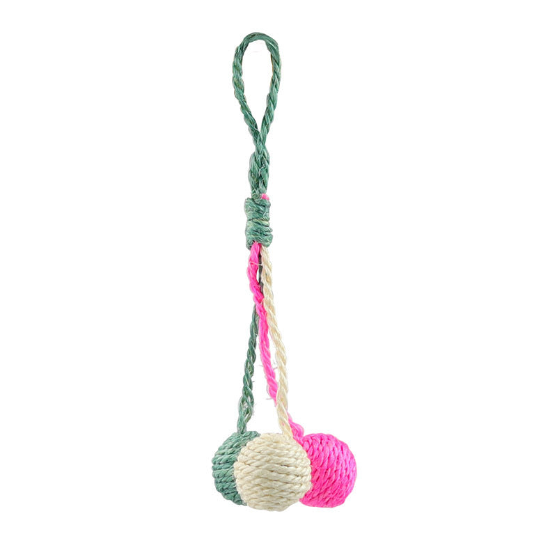 Katzen Spielzeug, Hängendes Katzenball, 3 bunten Hanfseilball, Eingebauter Klangstein, Selbstspiel- Interessante