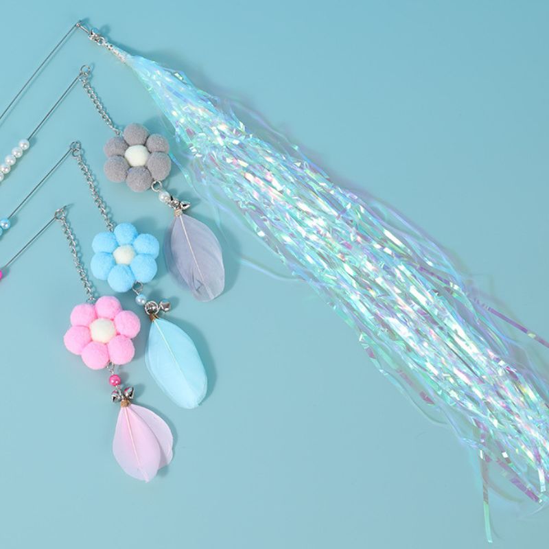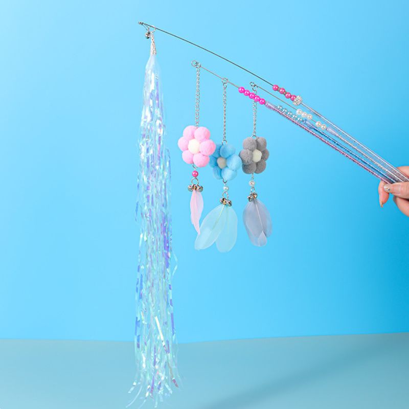 Katzen Spielzeug, Katzenangel mit Blumen oder Quasten, 46-47 cm lang, für Katzen zum Spielen und Bewegen