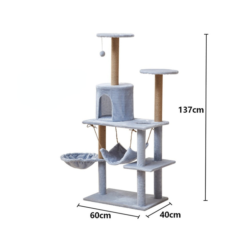 Katzenbaum groß, Hellblau Luxuriöser Mehrstöckiger Katzenkratzer, Sisal kratzbaum & Flauschigem Katzenbett, für mehrere Katzen