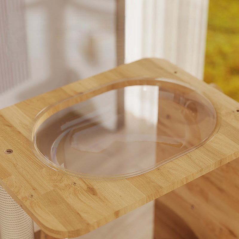 Katzenbaum Holz, Massivholz Katzenkratzbaum mit großem, rotierender Sisalball für Katzen & Elliptische Raumkapsel Für Katzen