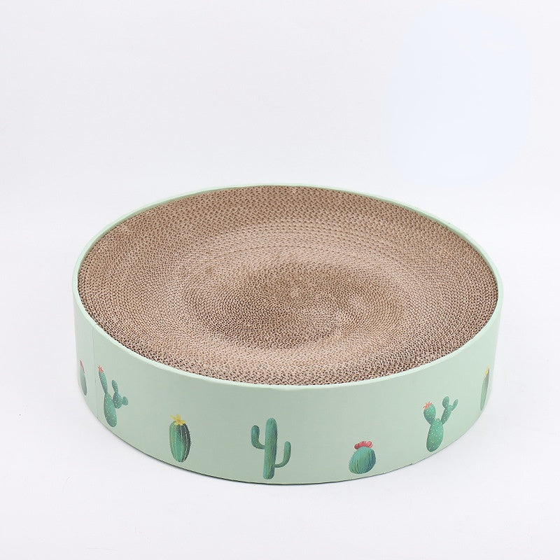 Katzenbett, Kaktusmuster kratzbrett katze in Grün & Rosa aus Wellpappen, für Katzen bis 10 kg, zum Kratzen und Entspannen