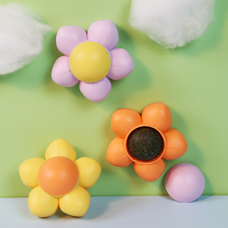 Katzenspielzeug, Blütenförmiges rotierendes catnip toys, Drei Farben, Anbieten Ersatz-Catnip-Bällen erhältlich, Zahnreinigung