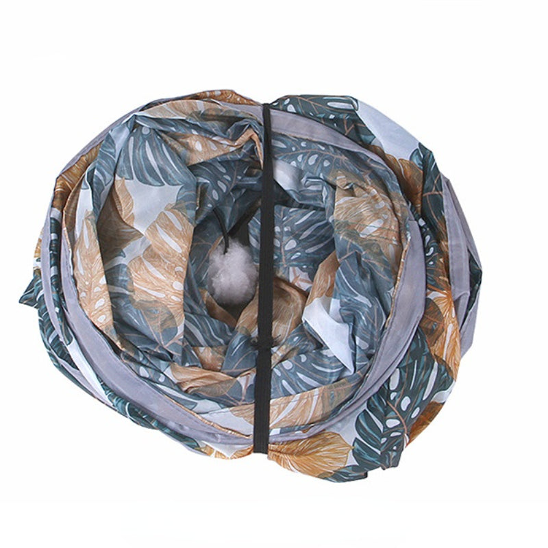 Katzentunnel, Blätter Druckmustern Faltbarer Katzen-Spieltunnel, Katzen Spielzeug für aktive Katzen, 4 Modelle verfügbar