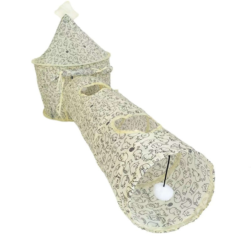 Katzentunnel, Faltbarer, Abnehmbar Katzenzelt mit drei Ausgang, Hängender ball für Spiel & Erholung, Drei Farben erhältlich