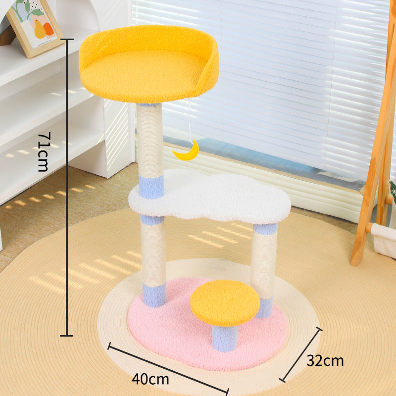 Kratzbaum für Katzen, 2 Ebenen, mit Stern & Mond Design, Sisal-Kratzsäule, Traumhaft in Rosa, Blau & Gelb, Plattform zum Ausruhen
