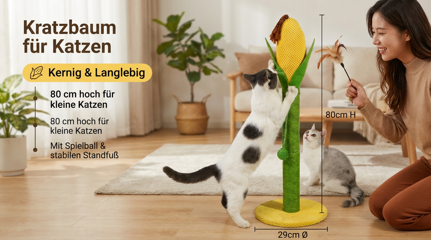Mais-Form – Einzigartiges Design in Form einer Maiskolbe, das die Aufmerksamkeit der Katze auf sich zieht.