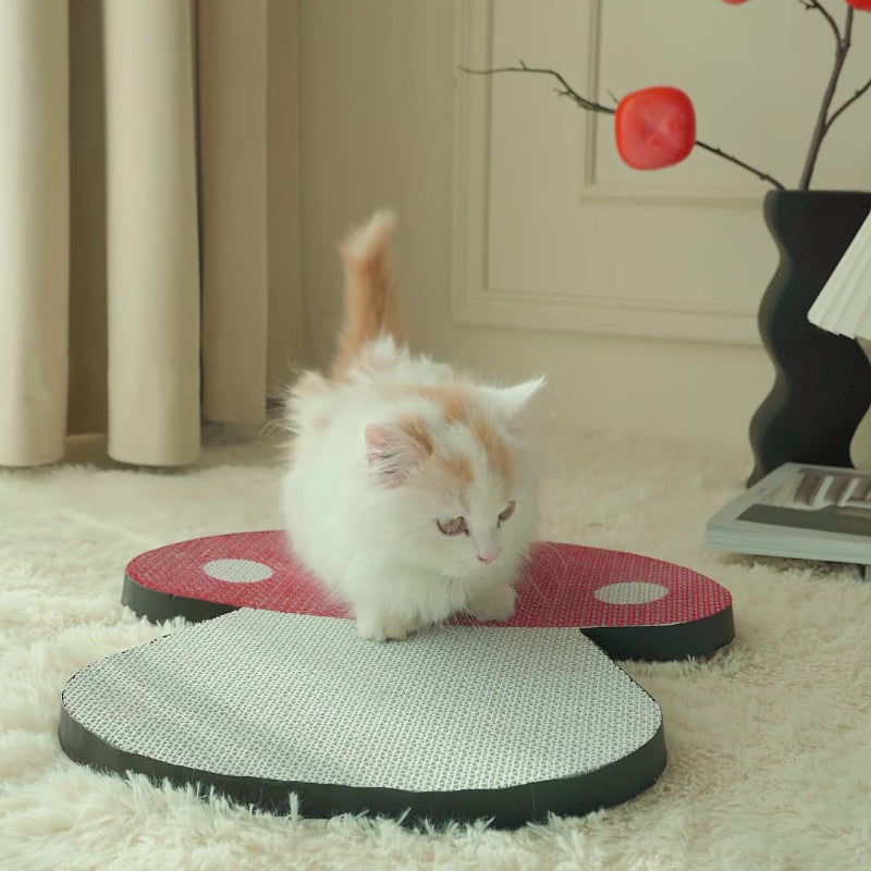 Fördert gesunde Bewegung – Das stilvolle rot-weiße Pilzdesign lädt Ihre Katzen zum Strecken und Kratzen ein, wodurch ihre natürliche Instinkte gefördert und ihre Krallen gepflegt werden.