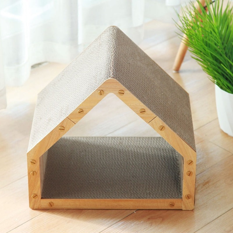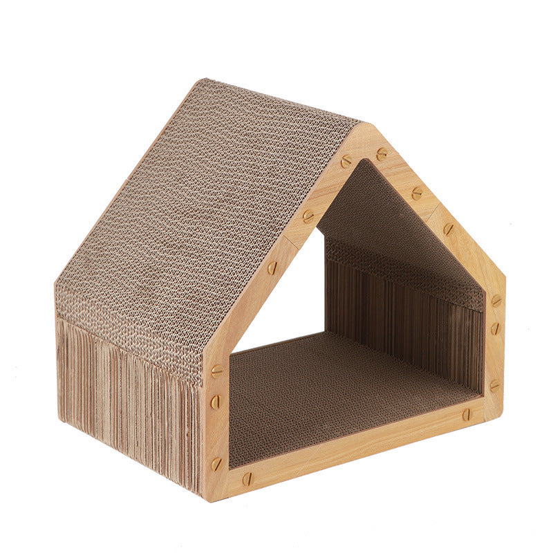 Klein und gemütlich – Das originelle kleine Holzhaus-Design bietet nicht nur eine Kratzfläche, sondern dient auch als bequemer Schlafplatz für Ihre Katze.