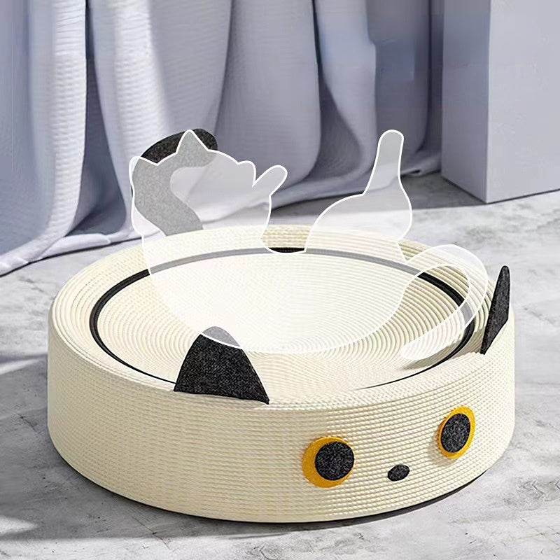 Kratzbrett Katzenform, runder Sisalmaterial Katzenkratzbett, niedliches Cartoon-Design, Frosch- und schwarze Katzenform