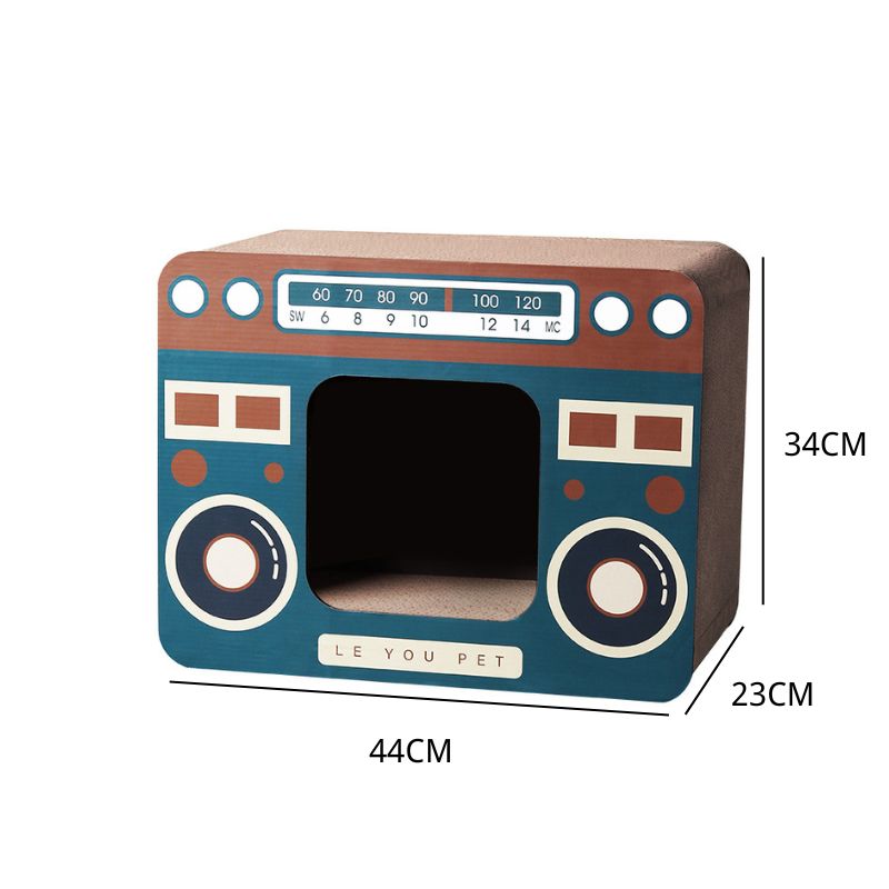 Kratzmöbel Katze, Wellenpappe Kratzbrett für Katzen im Radio und Fernsehdesign, Halboffene Kratzstation für Sicherheit und Komfort