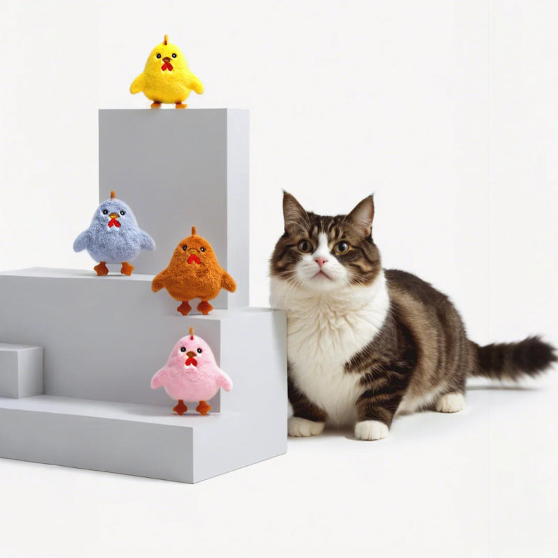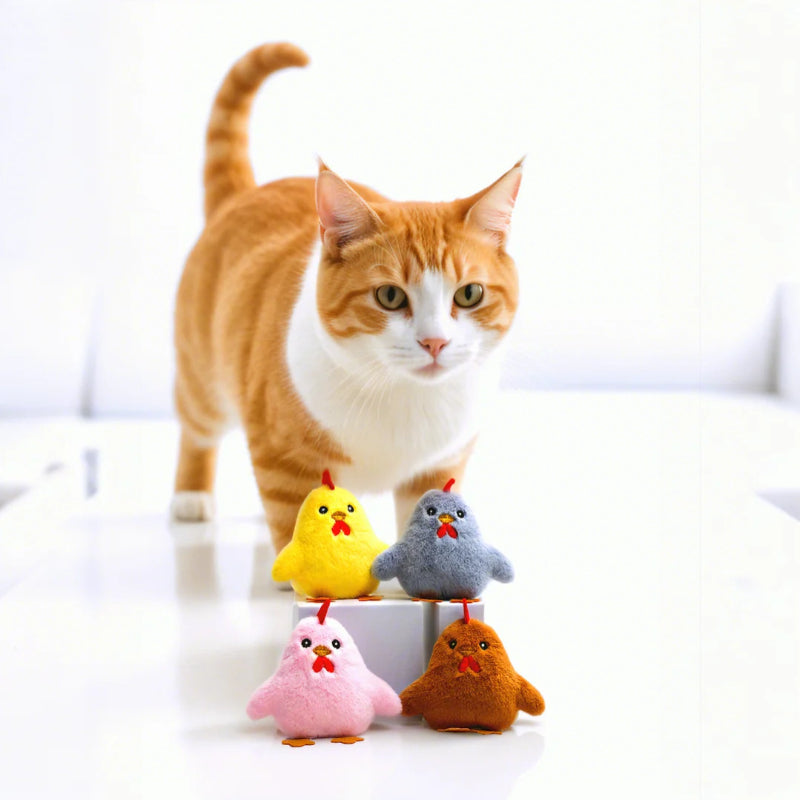Kuscheltier für Katze, Kuscheliges Plüschspielzeug im niedlichen Küken, 4er-Pack in vier Farben, für Katzen zum Kauen