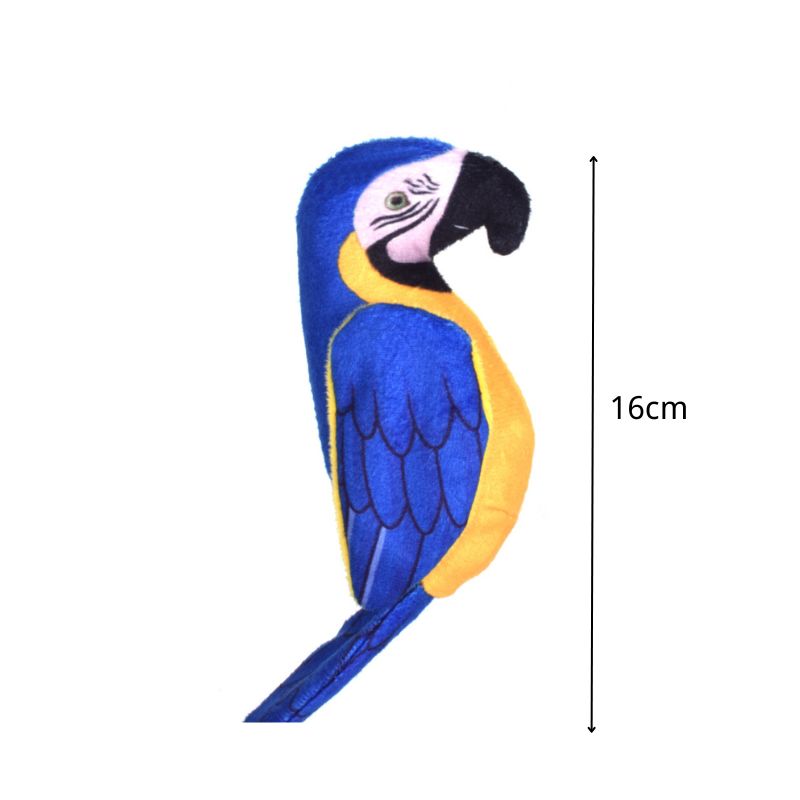 Kuscheltier Katze, Realistisches Papageien-Design, 16cm, mit Knisterpapier für spannende Geräusche, in Blau oder Rot
