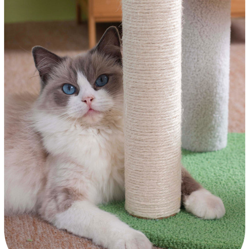 Hochwertige Materialien – Die Kratzsäule ist aus strapazierfähigem Sisal gefertigt, das auch den stärksten Kratzern standhält, während der weiche Katzensofa-Bereich für Behaglichkeit sorgt.