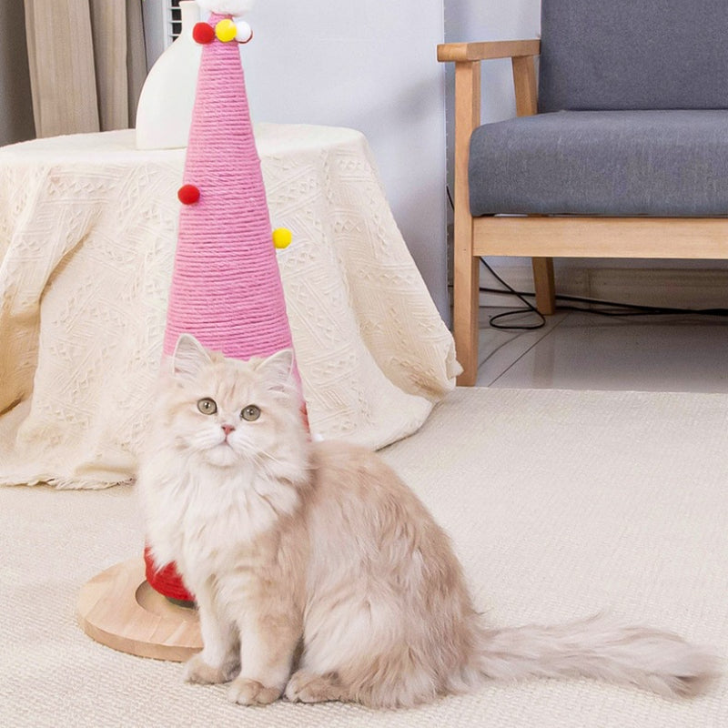 Moderner Kratzbaum, Rosa Sisal Weihnachtsbaumform Kratzbaum, stabiler Standfuß, Drehball für endlosen Spaß