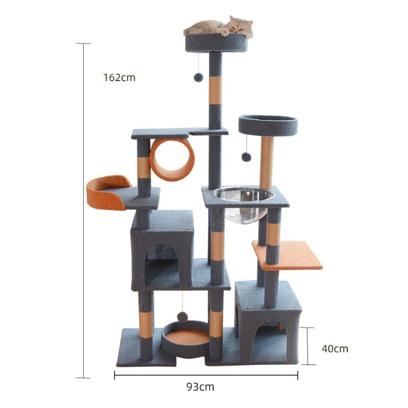 Katzenbaum XXL, Riesen Katzenbaum, Mehrstöckiger, Stabil, Katzenspielplatz mit Spielhöhle, 162 cm Höhe