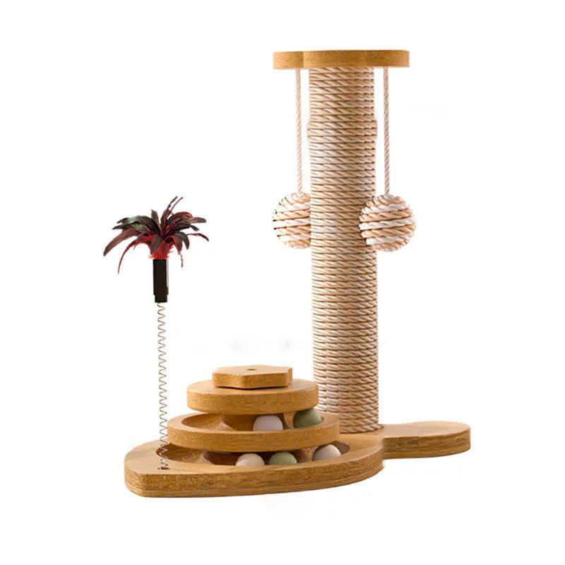 Pawsometime Sisalband Kratzbaum abriebfeste und nicht abbröckelnde, Kratzstamm mit Interaktiven Spielzeugen für Katzen