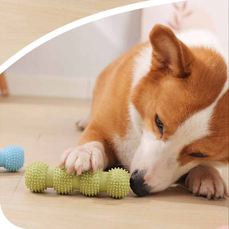 Spielzeug für den Hund, Vierkugel-Backenzahnstab aus TRP-Material, Bzerstörfest in drei Farben wählbar: Grün, Blau, Pink