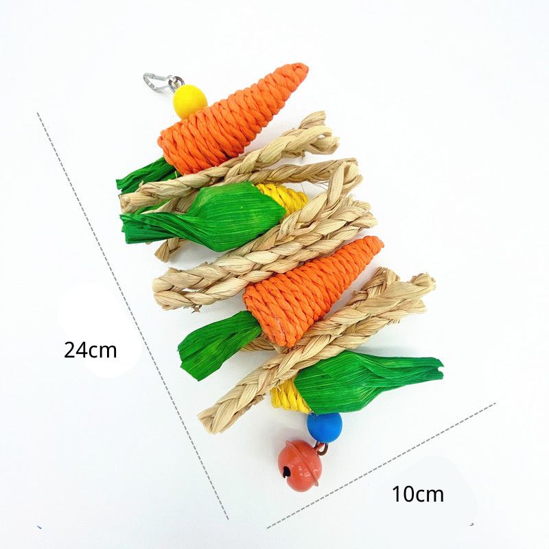 Spielzeug für Meerschweinchen, Süße, handgefertigtes Gras-Karotten-Spielzeug mit Glocken für Meerschweinchen und Kaninchen, Zwei Varianten verfügbar