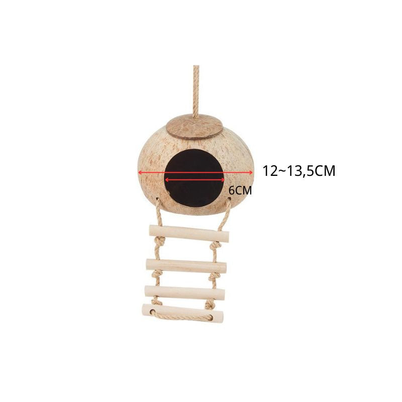 Mit dem Kokosnuss-Nest mit Leiter schenkst du deinem Wellensittich oder Papagei ein einzigartiges Spielzeug, das für Beschäftigung, Rückzug und Wohlbefinden sorgt. Die Kombination aus natürlicher Höhle und Kletterspaß macht dieses Produkt zum Must-have für jeden Vogelhalter – für mehr Lebensqualität und glückliche, gesunde Vögel!