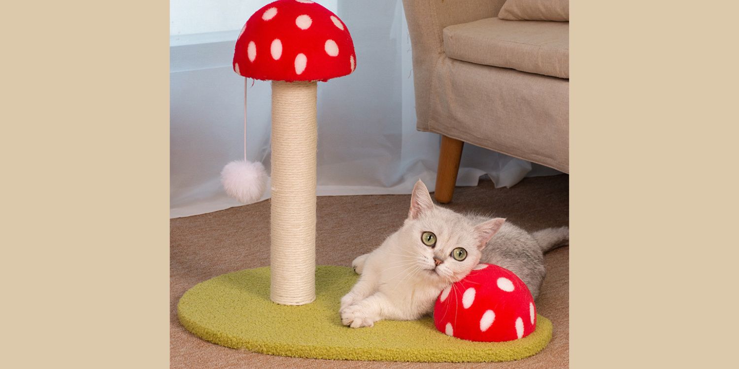 Kleiner Kratzbaum Katzen Niedlicher Roter Pilz Kratzbaum für Katzen, Kompakt und Platzsparend, Zwei Größen erhältlich