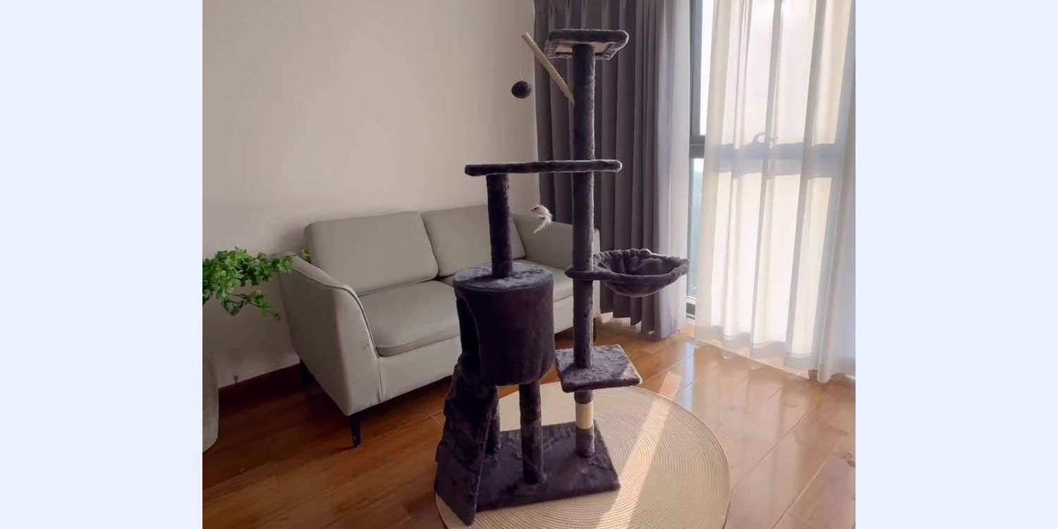 Mini Katzenbaum, Hochwertiger Katzenbaum mit Kratzbaum, Plüsch Höhle und Katzenbett, Schwarz oder Grau