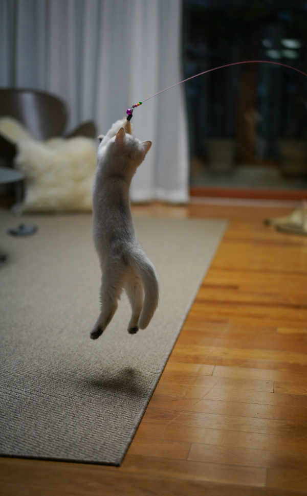 Interessanterweise kann das Sprungverhalten auch durch gezieltes Spielen gefördert und verbessert werden. Spielzeuge, die den Sprungtrieb der Katze anregen, wie zum Beispiel Katzenspielzeug türrahmen und Katzenangel, stärken nicht nur ihre Muskulatur, sondern entwickeln auch ihre Koordination. Achten Sie darauf, dass das Springen immer auf einem weichen Untergrund mit ausreichend Landefläche erfolgt.